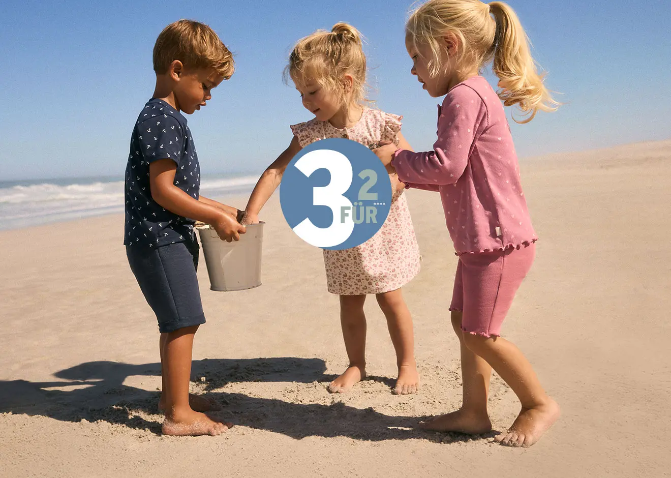 Der Rabatt gilt ab dem 01.04.2026 auf alle mit "3 für 2" gekennzeichneten Kinder-Artikel und nur solange der Vorrat reicht. Beim Kauf der Mindestanzahl an Artikeln wird der günstigste Artikel auf die aktionsberechtigten Artikel angerechnet. Gültig im Online Shop, in der App und in allen Filialen von Ernsting's family. Der Rabatt gilt nicht für Gutscheine und Versandkosten. Internetpakete können nicht nachträglich bei Abholung in der Filiale rabattiert werden. Nicht kombinierbar mit anderen (Aktions-)Rabatten. Der Rabatt wird automatisch am Ende des Bezahlvorgangs abgezogen.