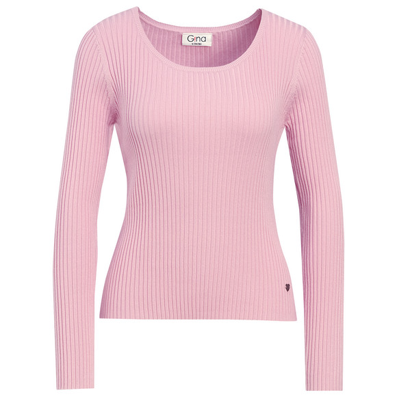 Weiches Langarmshirt in Rosa mit gerippter Struktur und Rundhalsausschnitt. Mit kleinem Metall-Herz am Saum.