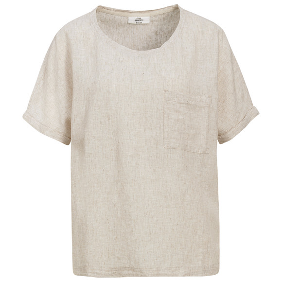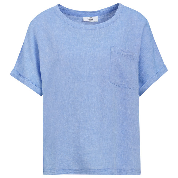 Damen Leinen-Bluse mit Brusttasche hellblau