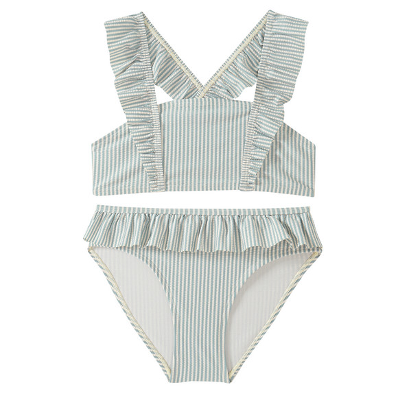 Mädchen Bikini mit Seersucker-Streifen türkis / weiss