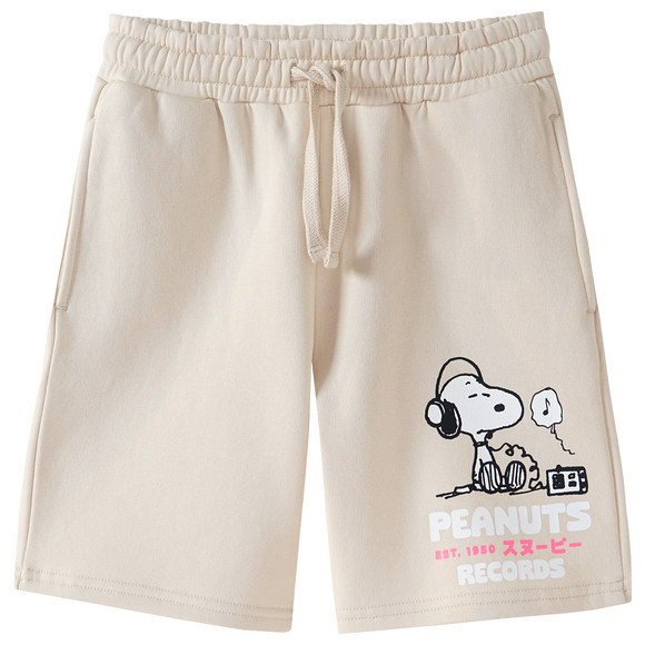 Joggingshorts in Beige mit geripptem Elastikbund und Tunnelzug. Einschubtaschen auf beiden Seiten sowie "Snoopy"-Print linksseitig. Innenseite kuschelig weich und locker geschnitten.