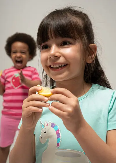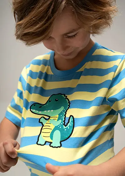 Lebendige Streifenmuster und kleine Details machen Sommerkleidung leicht, fröhlich und angenehm – für Kinder, die gern lachen und toben.
